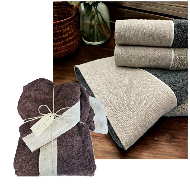 Accappatoio Firenze in spugna cioccolato con bordo in lino TG.M
