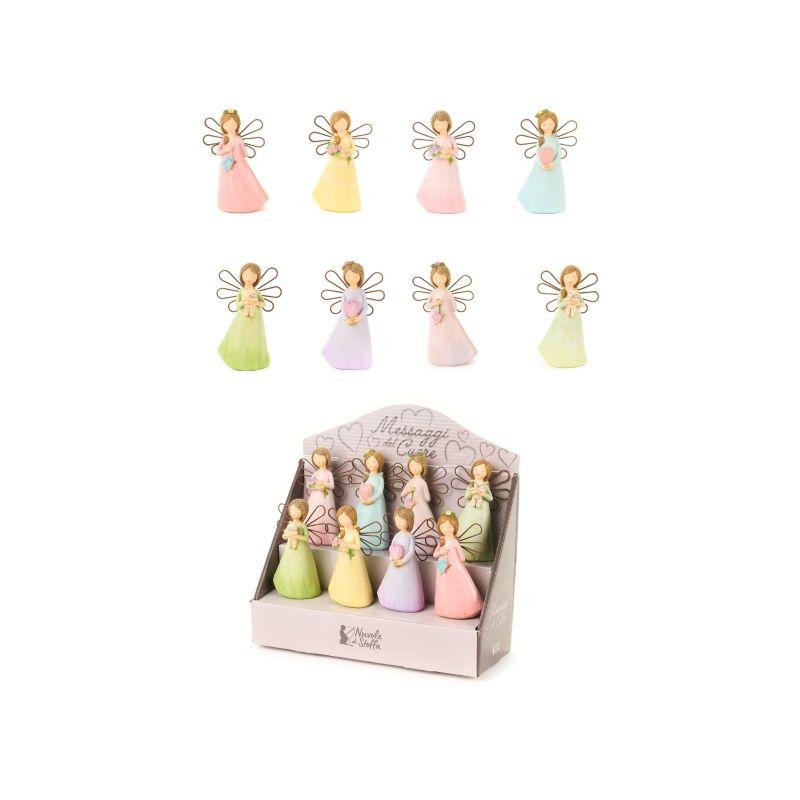 Angioletti in resina con ali in metallo e con colori assortiti.