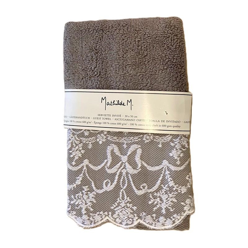 Asciugamano ospite con decorazione in pizzo della linea dentelle acquarelle.