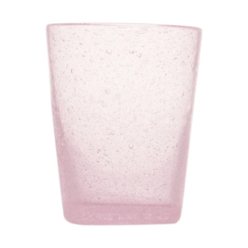 Set composto da 6 bicchieri in vetro realizzati attraverso lavorazione a mano e soffiatura artigianale, colorati in pasta di vetro dall'origine della produzione in modo da garantire il mantenimento del colore. Colore Pink. Dimensioni 10x7.80cm, capacità 0.30 L. Sono lavabili in lavastoviglie. No microonde o forno. Data la natura artigianale i bicchieri potrebbere mostrare piccole differenze all'interno della confezione.