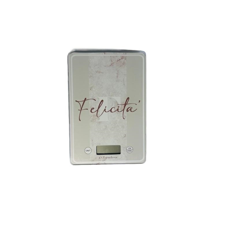 Bilancia in vetro da cucina rettangolare con scritta "Felicità". Le pile non sono incluse. Dimensioni 15x22x2.5cm. Linea Bomboniere Claraluna.Comprensiva di scatola. Per quantità superiori ad 1 pezzo contattare il punto vendita via mail all'indirizzo laculladelleidee@gmail.com o telefonicamente al n.+39 345 9452117