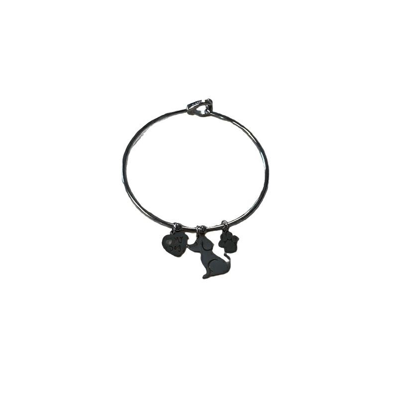 Bracciale silver cane,zampa e cuore My dog e chiusura a goccia