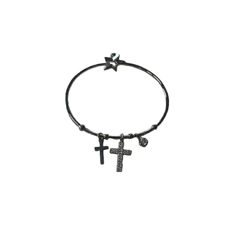 Bracciale silver con croci e strass e chiusura a stella