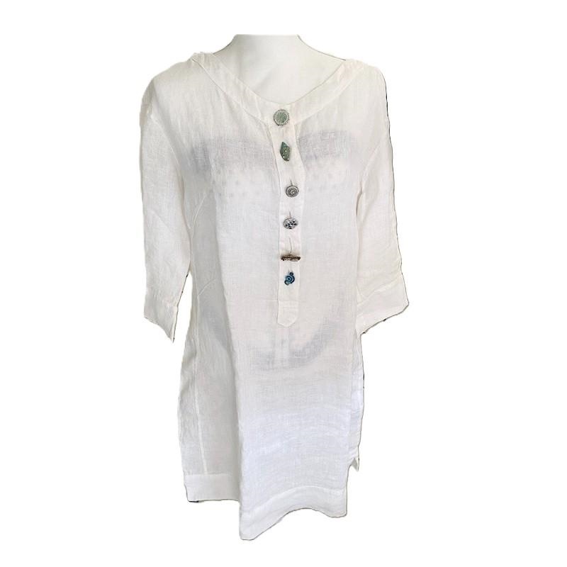 Caftano in lino leggero con pregiati bottoni - Tg.L - Arte Pura