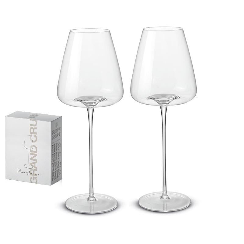 Coppia di calici in vetro di alta qualità con gambo stirato, della linea "Grand Cru" regalano eleganza e raffinatezza alla tavola e permettono di vivere la migliore esperienza organolettica dai tuoi vini preferiti.Ideale per vini bianchi. Colore trasparente. Dimensione d.8x24cm. Scatola regalo inclusa.