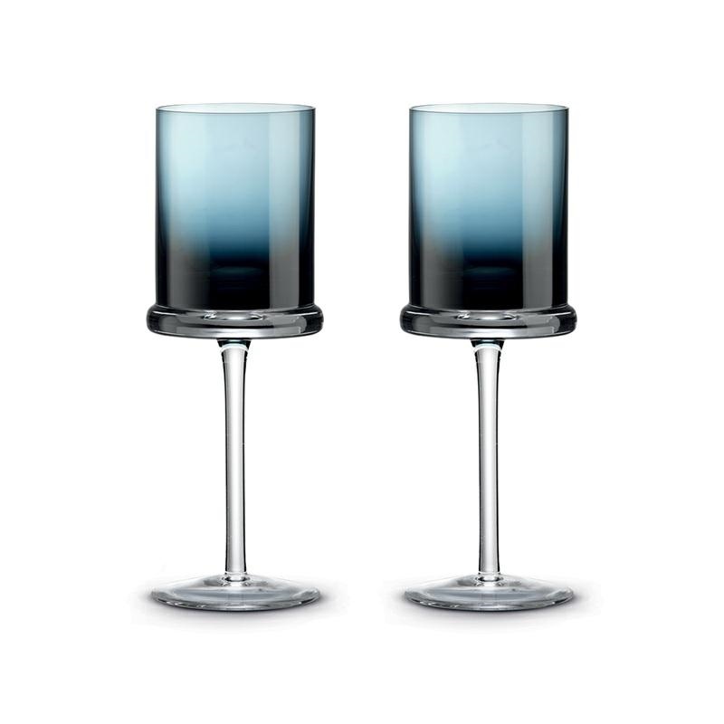 Coppia di calici in vetro colorati in pasta e soffiati a bocca e questo li rende unici e non perfettamente identici. Dal design lineare ma estremamente elegante e raffinato abbelliscono le nostre tavole. Colorazione Dark Blue. Capacità 270 ml. Scatola regalo inclusa.