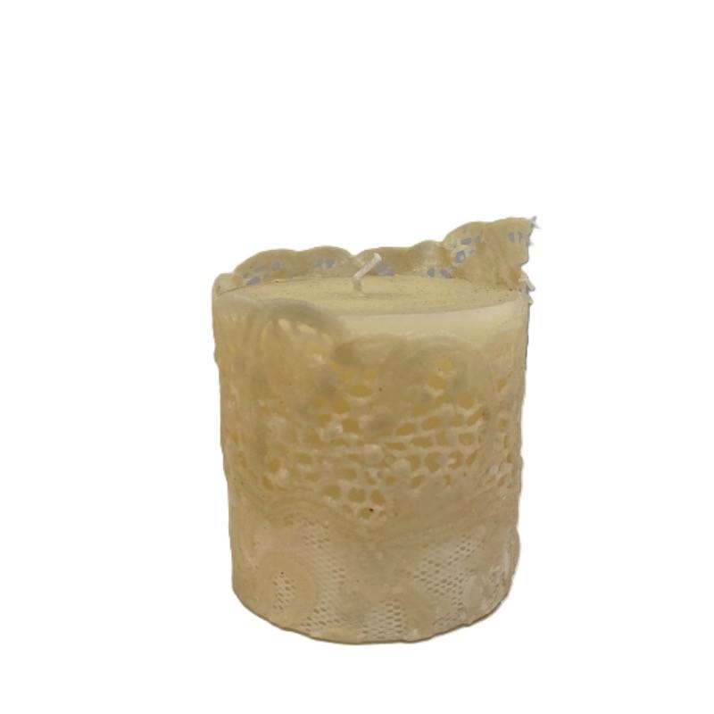 Candela sartoriale decorata con pizzo "Farnese" con forma cilindrica, profumata.