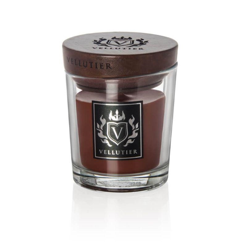 Candela Vellutier di cera vegetale infuse nelle fragranze concentrate in un lussuoso barattolo di vetro con coperchio ermetico in legno. Dimensioni 90 gr. Profumazione Gentlemen's lounge - area olfattiva sensuale, legnoso; fragranza bergamotto, cuoio,patchouli.