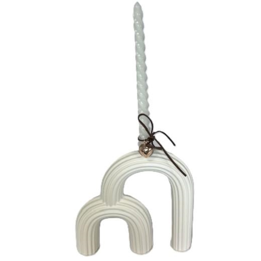 Candelabro ad arco motivo in rilievo con cuoricino e candela. Dimensioni circa 16x20 cm. Linea Bomboniere Claraluna.Comprensiva di scatola. Per quantità superiori ad 1 pezzo contattare il punto vendita via mail all'indirizzo laculladelleidee@gmail.com o telefonicamente al n.+39 345 9452117