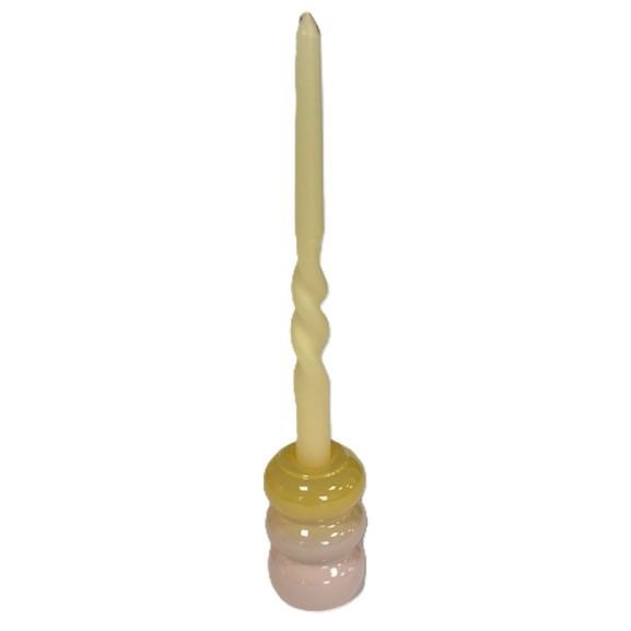Candelabro cilindrico in vetro color giallo sfumato con candela. Dimensioni circa 6x9 cm. Linea Bomboniere Claraluna.Comprensiva di scatola. Disponibile nella versione senza candela cod. 25166 €12.90 Per quantità superiori ad 1 pezzo contattare il punto vendita via mail all'indirizzo laculladelleidee@gmail.com o telefonicamente al n.+39 345 9452117