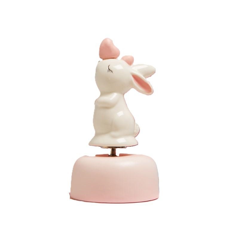 Carillon coniglietto rosa in porcellana con cuoricino rosa. Dimensioni 5.5x4.3x15 cm. Linea Bomboniere Claraluna. Per quantità superiori ad 1 pezzo contattare il punto vendita via mail all'indirizzo laculladelleidee@gmail.com o telefonicamente al n.+39 345 9452117