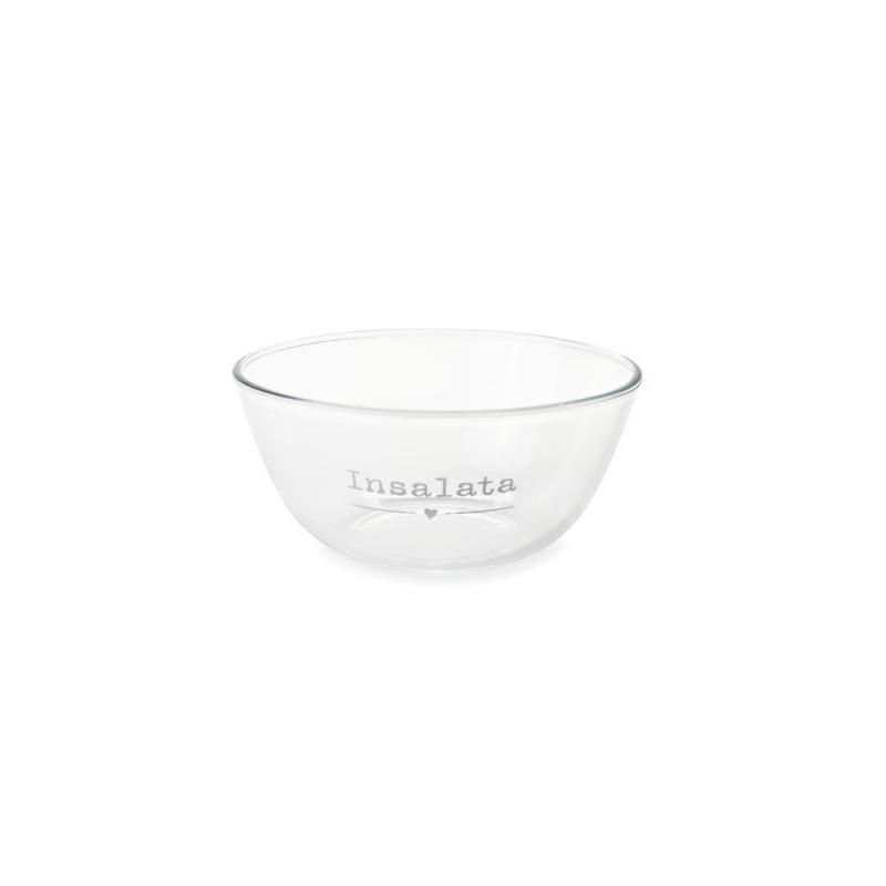 Ciotola in vetro borosilicato con decoro scritta "Insalata" della linea My Home.