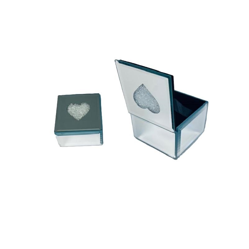 Cofanetto quadrato in legno e specchio con cuore centrale.