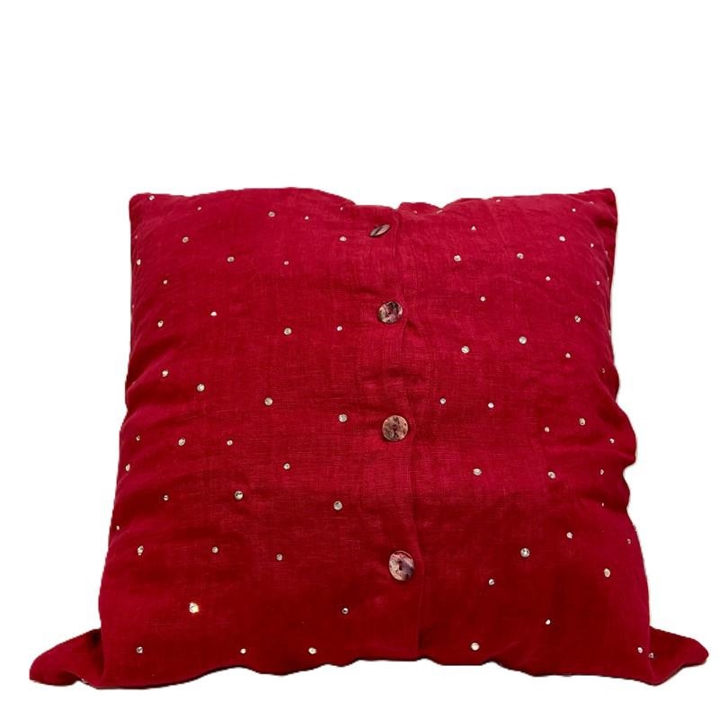 Coppia di federe in lino pesante tempestata di cristalli; chiusura con pregiati bottoni Agoya. Colore Convivio, disponibile anche burro old. Dimensioni 60x60cm. Prodotto con materiali naturali in italia. Dai un tocco prezioso al tuo arredamento, ideale per arredare il letto ma anche il divano.
