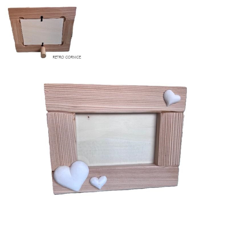 Cornice in legno con decoro cuori gesso