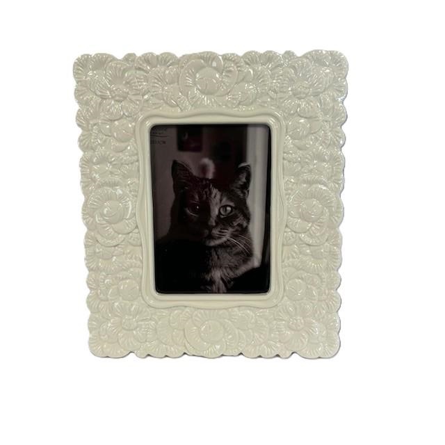 Cornice porta foto in porcellana bianca con decoro floreale. Dimensioni esterna 20x24 cm, dimensioni foto 10x15 cm. Scatola regalo inclusa. Linea Bomboniere Morena Cuorematto. Con l'acquisto minimo di 40 pz ricevi in omaggio le partecipazioni. Per maggiori informazioni, per quantità superiori ad 1 pezzo contattare il punto vendita via mail all'indirizzo laculladelleidee@gmail.com o telefonicamente al n.+39 345 9452117