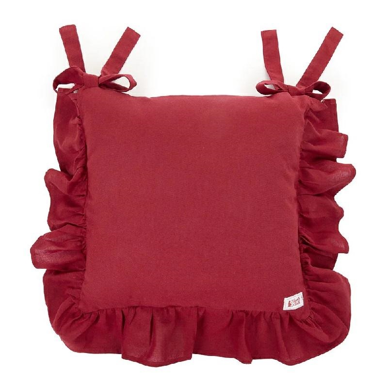 Cuscino per sedia con federa in cotone e imbottitura inclusa. Balza laterale e laccetti.