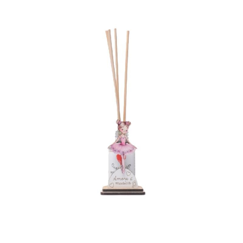 Diffusore di profumo Ballerina, kit midollini e profumo incluso. Dimensioni h 8 cm. Scatola inclusa. Linea Bomboniere solidali Cuorematto. Per maggiori informazioni, per quantità superiori ad 1 pzcontattare il punto vendita via mail all'indirizzo laculladelleidee@gmail.com o telefonicamente al n.+39 345 9452117