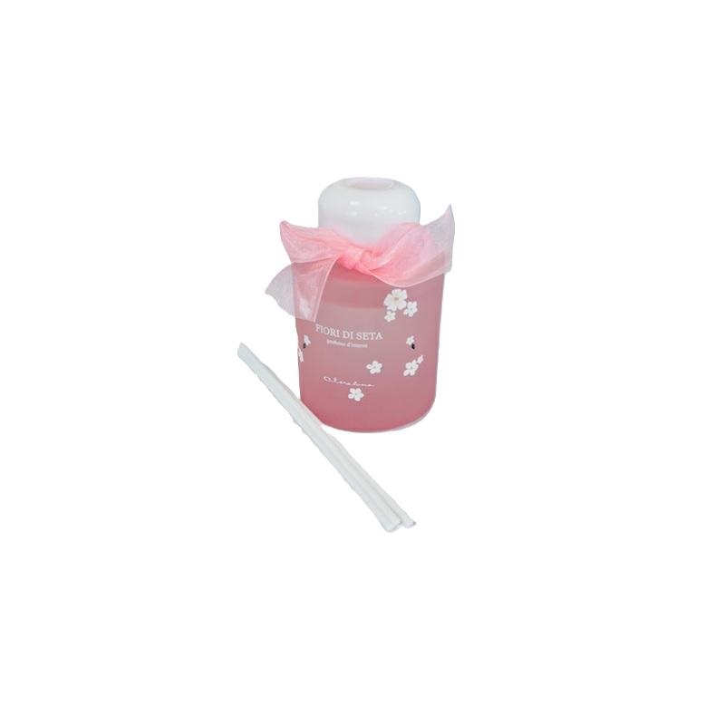 Diffusore di profumo da 120 ml rosa con decoro fiori.Kit midollini e profumo inclusi. Dimensioni 6.5x10.3 cm. Linea Bomboniere Claraluna.Comprensiva di scatola. Per quantità superiori ad 1 pezzo contattare il punto vendita via mail all'indirizzo laculladelleidee@gmail.com o telefonicamente al n.+39 345 9452117