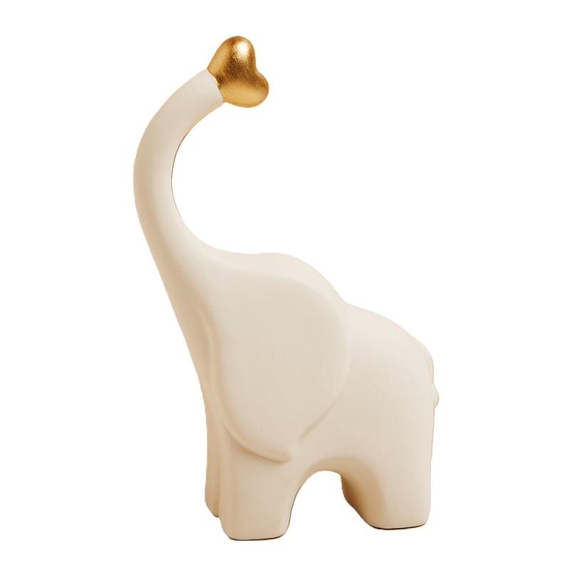 Elefantino in gres con cuore oro. Dimensioni 11.5x5.5x19 cm. Linea Bomboniere Claraluna.Comprensiva di scatola. Per quantità superiori ad 1 pezzo contattare il punto vendita via mail all'indirizzo laculladelleidee@gmail.com o telefonicamente al n.+39 345 9452117