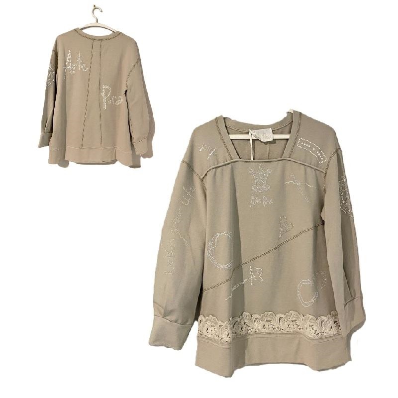 Felpa in cotone con applicazioni e strass colore Gesso Old.