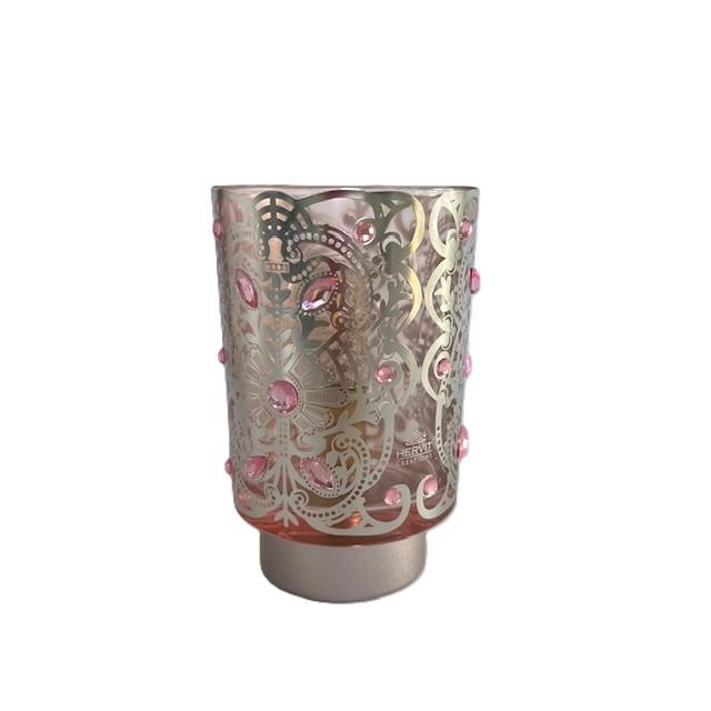 Lampada led in vetro, decorazione Bisanzio con pietre rosa.