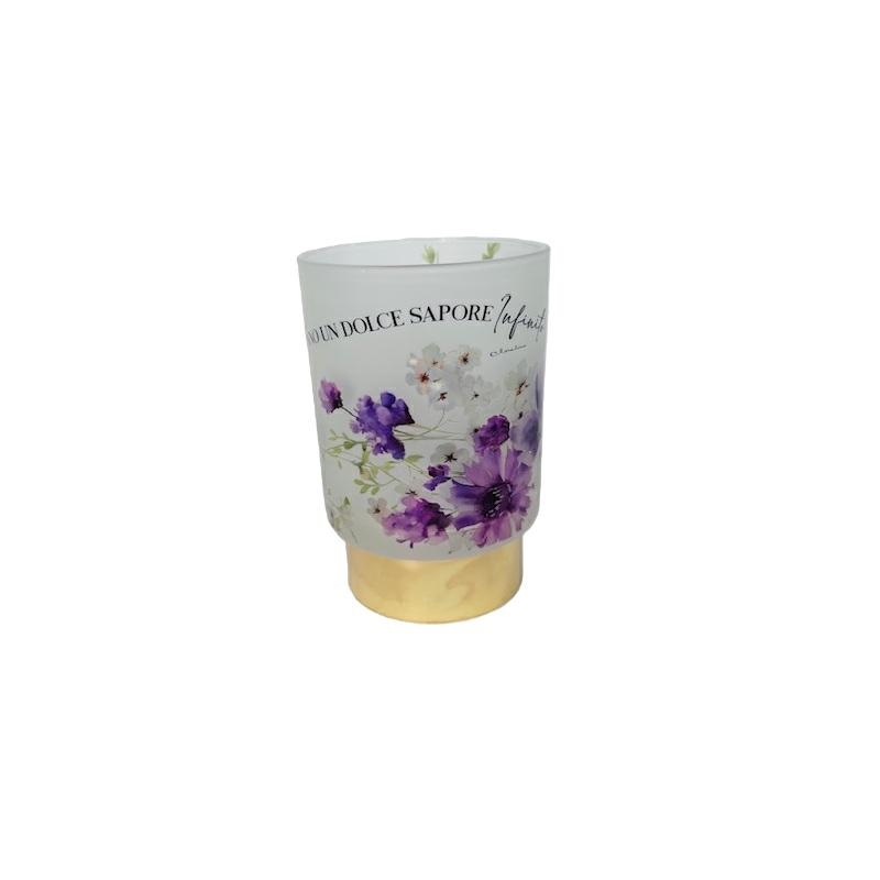 Lampada led con decoro floreale lilla e frase: "Certe emozioni hanno un colce sapore infinito." Le pile non sono incluse. Dimensioni 8.8x8.8x12.5 cm. Linea Bomboniere Claraluna.Comprensiva di scatola. Per quantità superiori ad 1 pezzo contattare il punto vendita via mail all'indirizzo laculladelleidee@gmail.com o telefonicamente al n.+39 345 9452117