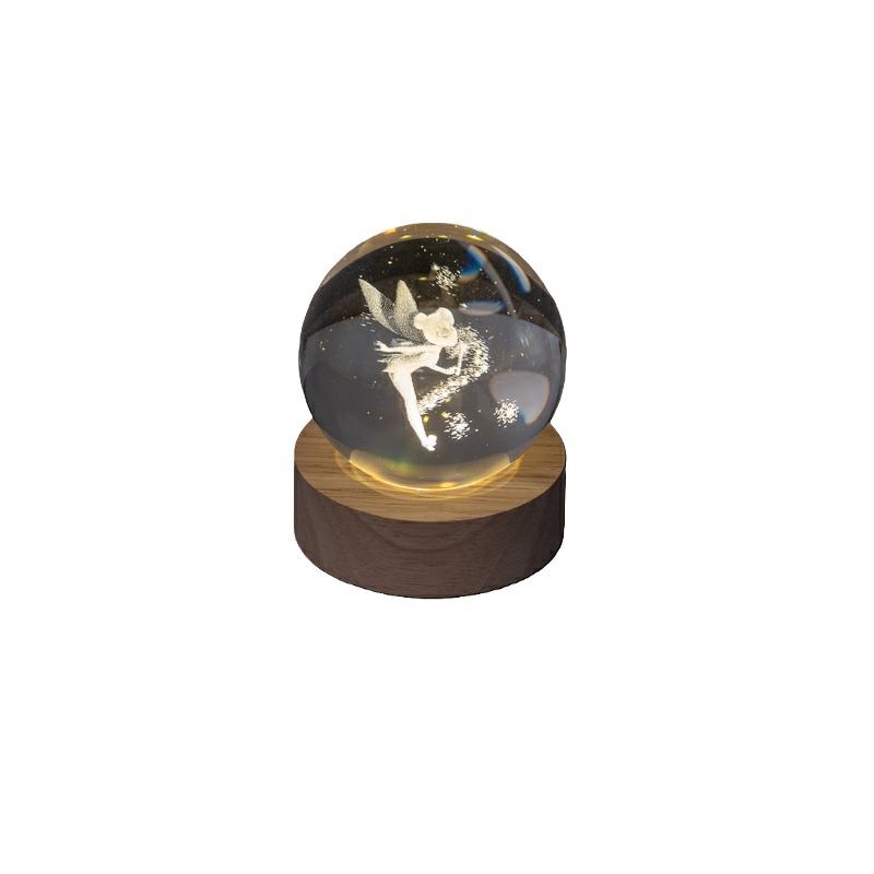 Lampada led con decorazione laser Fata in palla di vetro poggiata su base legno completo di cavo usb. Dimensioni 6*6*7.5 cm.. Per maggiori informazioni, per quantità superiori ad 1 pezzo contattareil punto vendita via mail all'indirizzo laculladelleidee@gmail.com o telefonicamente al n.+39 345 9452117