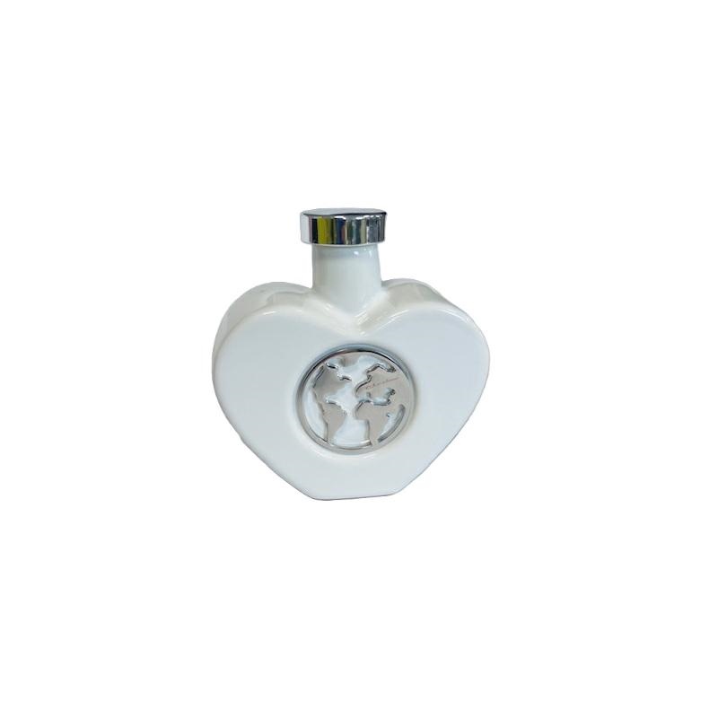 Oliera in ceramica a forma di cuore con decorazione mondo silver con tappo. Senza olio. Disponibile nella versione con olio biologico. Dimensioni 9.5x4.5x9 cm Linea Bomboniere Claraluna.Comprensiva di scatola. Per quantità superiori ad 1 pezzo o versione con olio contattare il punto vendita via mail all'indirizzo laculladelleidee@gmail.com o telefonicamente al n.+39 345 9452117