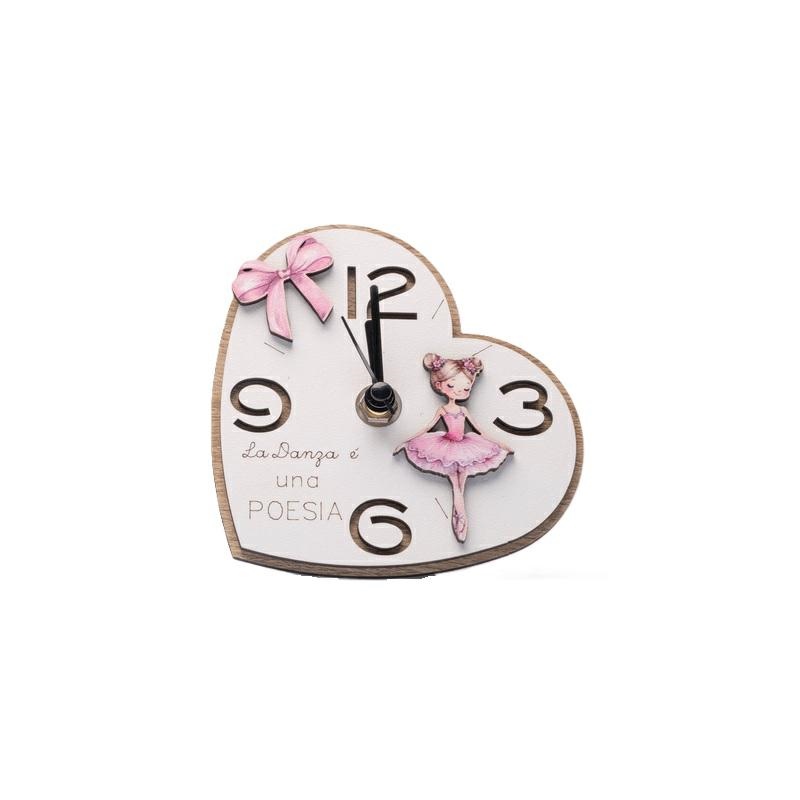 Orologio in legno a forma di cuore con decoro Ballerina. Dimensioni d.11 cm. Pila non inclusa. Scatola inclusa. Linea Bomboniere solidali Cuorematto. Per maggiori informazioni, per quantità superiori ad 1 pz contattare il punto vendita via mail all'indirizzo laculladelleidee@gmail.com o telefonicamente al n.+39 345 9452117