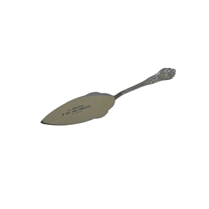Paletta per torta con inciso la scritta "La felicità è una cosa semplice". Dimensioni 25x5.5cm Linea Bomboniere Claraluna.Comprensiva di scatola. Per quantità superiori ad 1 pezzo contattare il punto vendita via mail all'indirizzo laculladelleidee@gmail.com o telefonicamente al n.+39 345 9452117