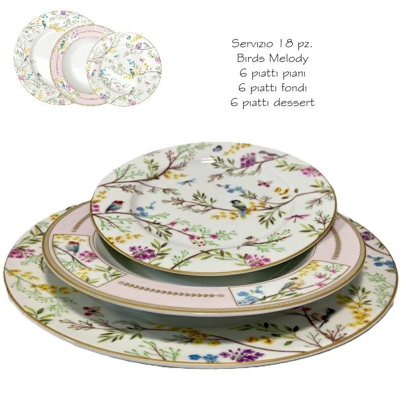 Servizio di piatti in porcellana dipinti a mano della linea Birds Melody di Easylife.