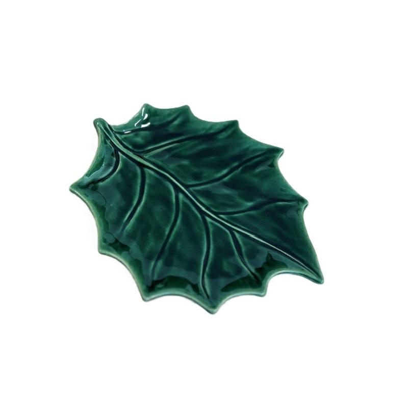 Piatto dessert in ceramica artigianale a forma di foglia di agrifoglio.