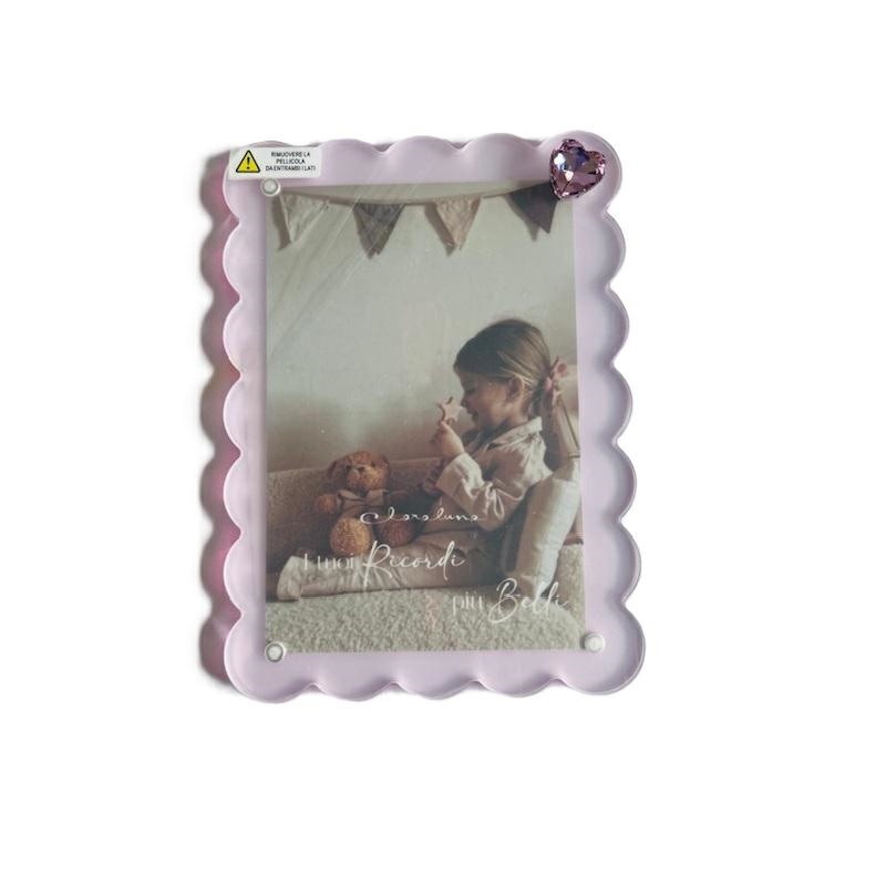 Porta foto in plexiglass rosa effetto nuvoletta e cuoricino calamita coordinato. Dimensione 18.2x13.1 cm, fotografia 10x15cm. Linea Bomboniere Claraluna.Comprensiva di scatola. Per quantità superiori ad 1 pezzo contattare il punto vendita via mail all'indirizzo laculladelleidee@gmail.com o telefonicamente al n.+39 345 9452117