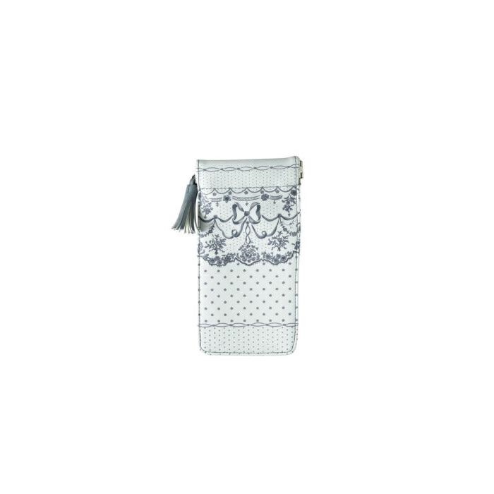 Porta occhiali nella fantasia Dentelle Aquarelle sfondo bianco con decori grigi.