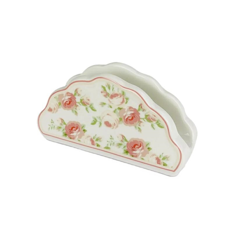 Porta tovaglioli in ceramica con decorazione della linea Annette, con roselline rosa.