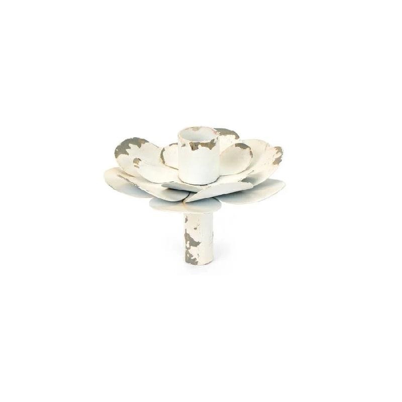 Portacandela in metallo sbiancato stile Shabby a forma di fiore.