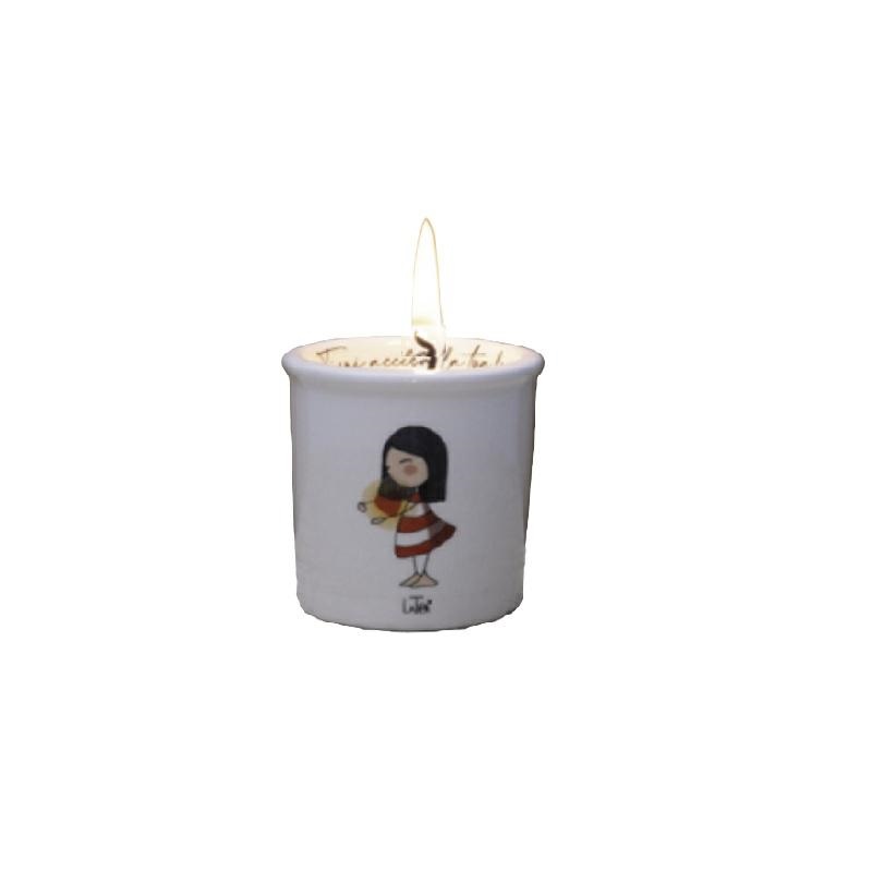 Porta candela in ceramica con decorazione serie La Tipa. Dimensioni 5x5x6 cm. Scatola regalo inclusa. Linea Bomboniere solidali Cuorematto. Scegliendo questa linea contribuisci a sostenere Antoniano che realizza interventi educativi e riabilitativi per bambini affetti da sindrome di down, autismo e patologie di ritardo mentale. Con l'acquisto minimo di 40 pz ricevi in omaggio le partecipazioni e avrai la disponibilità di un sito internet esclusivo per le tue nozze. Per maggiori informazioni, per quantità superiori ad 1 pezzo contattare il punto vendita via mail all'indirizzo laculladelleidee@gmail.com o telefonicamente al n.+39 345 9452117