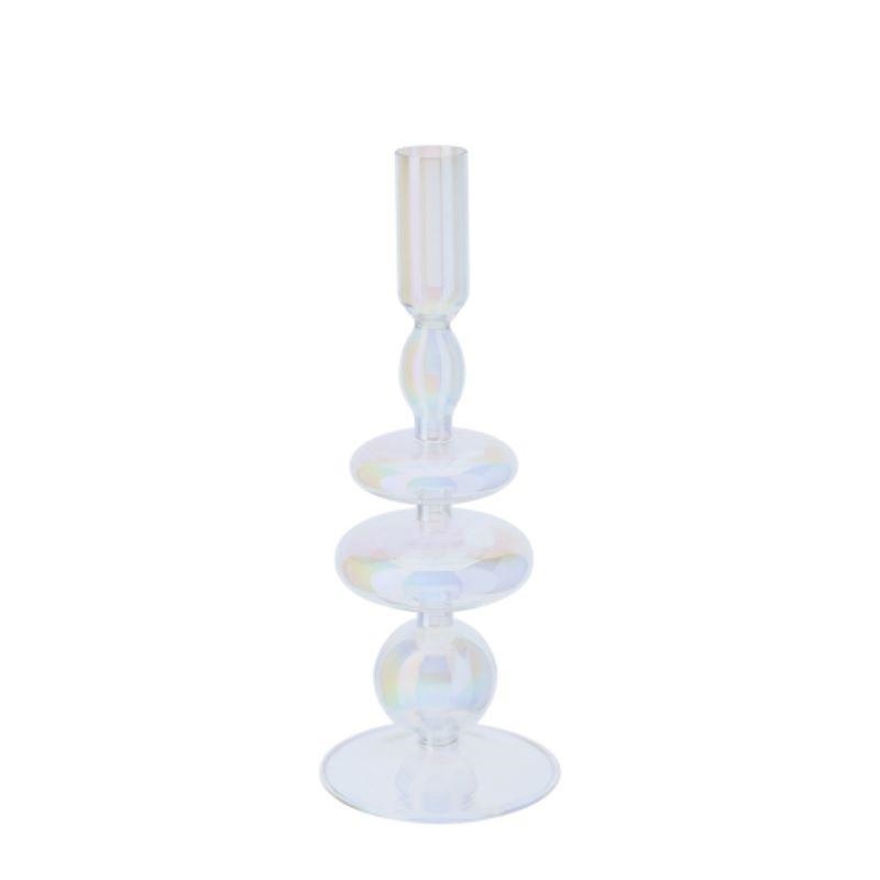 Portacandela vetro blow trasparente iridescente, adatto a candele classiche.
