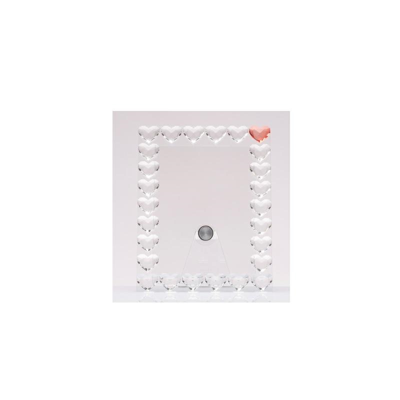 Portafoto in cristallo con cuori e cuore rosso. Dimensioni interne per foto 12x18cm, esterne 22x20cm. Linea Bomboniere solidali Cuorematto. Scegliendo questa linea contribuisci a sostenere Antoniano che realizza interventi educativi e riabilitativi per bambini affetti da sindrome di down, autismo e patologie di ritardo mentale. Con l'acquisto minimo di 40 pz ricevi in omaggio le partecipazioni e avrai la disponibilità di un sito internet esclusivo per le tue nozze. Per maggiori informazioni, per quantità superiori ad 1 set contattare il punto vendita via mail all'indirizzo laculladelleidee@gmail.com o telefonicamente al n.+39 345 9452117