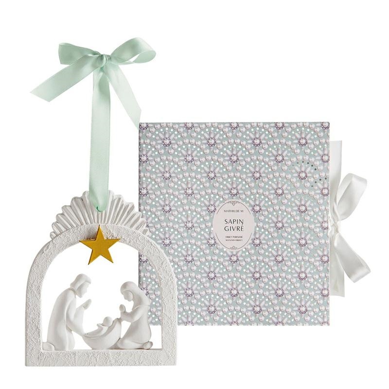 Nuova collezione delle feste! Interamente realizzato a mano, questo adorabile presepe natalizio in gesso Fête Nacrée profuma delicatamente e a lungo tutti i piccoli spazi della tua casa. Vestirà coneleganza la tua tavola, il tuo buffet o la base dell'albero con l'avvicinarsi delle feste di fine anno. Fragranza Sapin Givré: Fresche note di eucalipto e aghi di pino si levano in un soffio gelido.Il cedro apporta la sua forza legnosa, ancorata alla profondità del patchouli. Una fragranza rinvigorente, pura e decisamente invernale, che veste la casa di uno spirito incantato e al contempo una passeggiata nella foresta innevata nel cuore dell'inverno... Una volta esaurita la fragranza si può ravvivare con gli appositi vaporizzatori profumati. Dimensioni della decorazione: 12,7 x 14,8 x 1,4cm