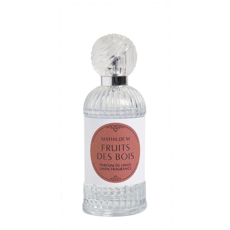 Profumo spray per ambiente adatto ai tessuti in bottiglietta di vetro da 75 ml.Con un basso contenuto di alcol, la sua formula è stata appositamente studiata per rispettare tutti i tessuti (lenzuola,cuscini, tende, divani o vestiti). Fragranza: Fruits des Bois - un profumo avvincente floreale e fruttato che rivela note croccanti di frutti rossi vestite di velluto dal fiore di viola. Sullo sfondo, le note dolci della vaniglia e del patchouli risvegliano finalmente le nostre papille gustative e ci fanno venire voglia di marmellata di fragole. Dimensioni flacone 5x13cm