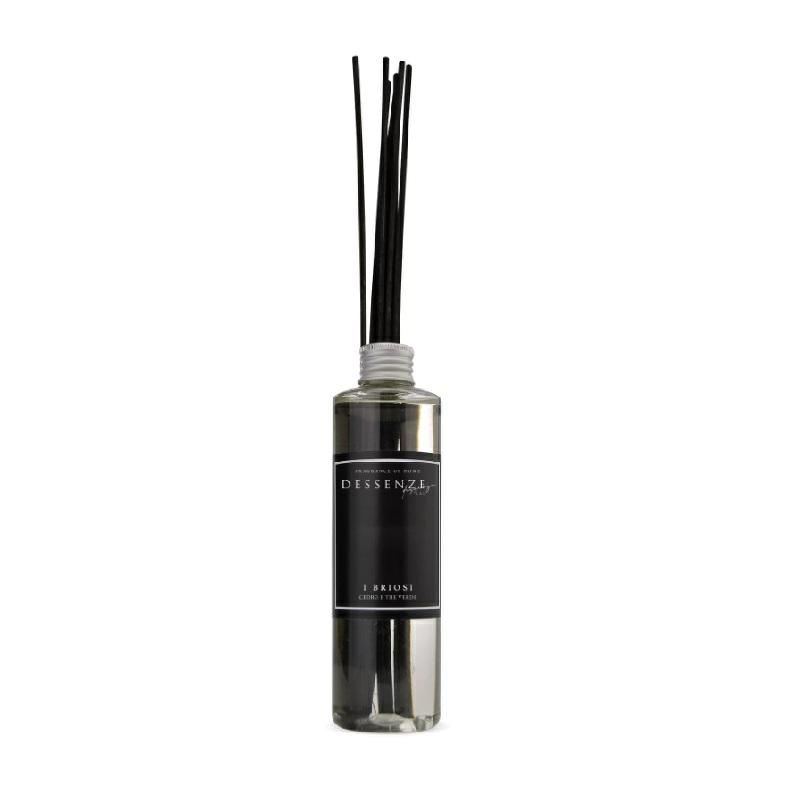 Ricarica con midollini. Dimensioni 250ml. Fragranza I Briosi Cedro e The Verde: fragranza armoniosa che si sposa con le frizzanti note del cedto, rende l'ambiente piacevolmente gioioso, ideale durante un bagno rilassante. Profumo legnoso e agrumato. NOTE DI TESTA: Bergamotto, Gelsomino, Arancio e Limone NOTE DI CUORE: Nota Verde, Assenzio Romano, Cumino, Rosmarino, Noce Moscata e The Verde NOTE DI FONDO: Cedro e Muschio