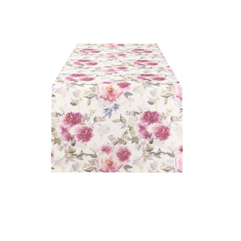 Colorazione base neutra e fiori sul rosa, coordinabile con la tovagli Demetra Rosa.