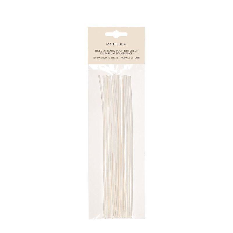 Sacchetto contenente 18 midollini in rattan vegetale, ricambio per diffusori di profumo per ambiente.