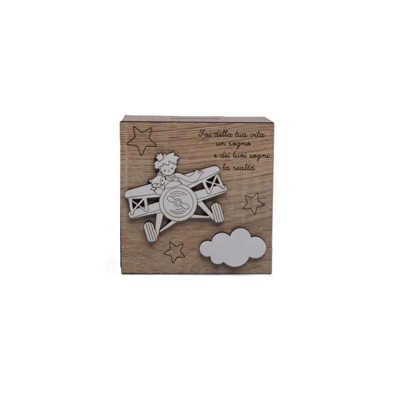 Salvadanaio in legno taglio laser decoro Piccolo Principe e frase "Fai della tua vita un sogno e dei tuoi sogni la realtà" Dimensioni 9x9x7 cm. Scatola regalo inclusa. Linea Bomboniere solidali Amici di Cuorematto. Scegliendo questa linea contribuisci a sostenere Antoniano che realizza interventi educativi e riabilitativi per bambini affetti da sindrome di down, autismo e patologie di ritardo mentale. Con l'acquisto minimo di 40 pz ricevi in omaggio le partecipazioni e avrai la disponibilità di un sito internet esclusivo per le tue nozze. Per maggiori informazioni, per quantità superioriad 1 pezzo e per confezionamento bomboniere contattare il punto vendita via mail all'indirizzo laculladelleidee@gmail.com o telefonicamente al n.+39 345 9452117