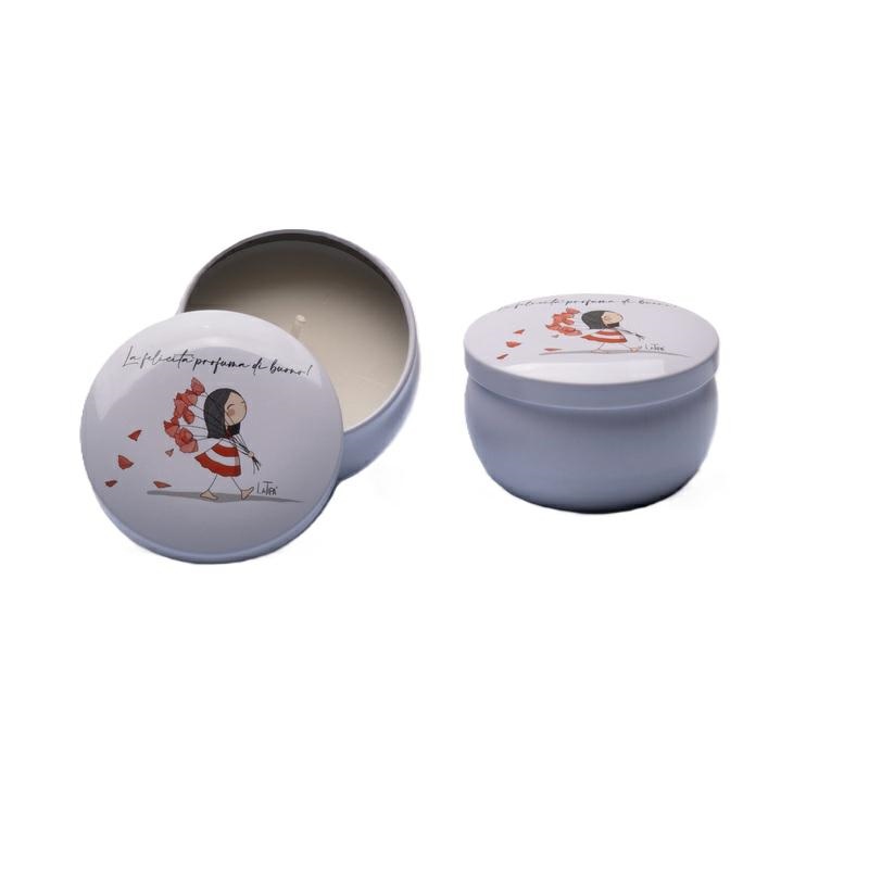 Scatole tonde in latta con decoro La Tipa e candelina profumata all'interno. Dimensioni d6.5x6x4 cm. Acquisto minimo 10 pz, venduto in multipli di 10 pz. Linea Bomboniere solidali Cuorematto. Scegliendo questa linea contribuisci a sostenere Antoniano che realizza interventi educativi e riabilitativi per bambini affetti da sindrome di down, autismo e patologie di ritardo mentale. Per maggiori informazioni, per quantità superiori ad 1 pezzo contattare il punto vendita via mail all'indirizzo laculladelleidee@gmail.com o telefonicamente al n.+39 345 9452117