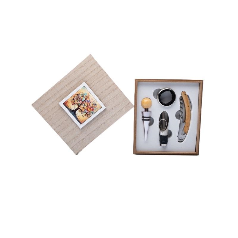 Scatola in legno, fantasia albero della vita contentente attrezzi per il vino. Dimensioni 14x16x5 cm. Scatola regalo inclusa. Linea Bomboniere solidali Cuorematto. Scegliendo questa linea contribuisci a sostenere Antoniano che realizza interventi educativi e riabilitativi per bambini affetti da sindrome di down, autismo e patologie di ritardo mentale. Con l'acquisto minimo di 40 pz ricevi in omaggio le partecipazioni e avrai la disponibilità di un sito internet esclusivo per le tue nozze. Per maggiori informazioni, per quantità superiori ad 1 pezzo contattare il punto vendita via mail all'indirizzo laculladelleidee@gmail.com o telefonicamente al n.+39 345 9452117