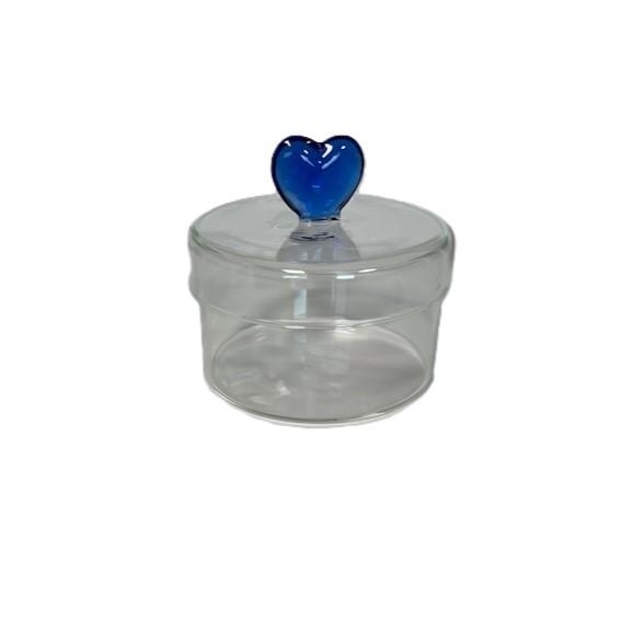 Scatolina in vetro trasparente con cuoricino blu sul coperchio. Dimensioni circa 9x9 cm. Linea Bomboniere Claraluna.Comprensiva di scatola. Per quantità superiori ad 1 pezzo contattare il punto vendita via mail all'indirizzo laculladelleidee@gmail.com o telefonicamente al n.+39 345 9452117