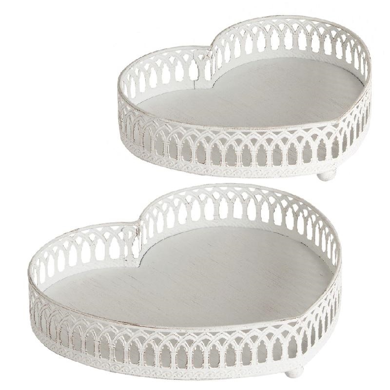 Set 2 vassoi in metallo bianco a forma di cuore, due dimensioni differenti.